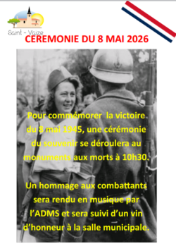 Pour commémorer la victoire du 8 mai 1945, une cérémonie du souvenir se déroulera au monument aux morts à 10h30.